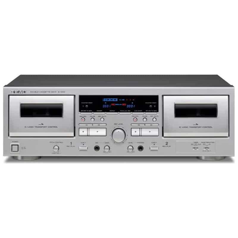 W-1200は、ワンウェイ(片道走行)カセットメカを2基搭載したダブルデッキに、マイクミキシング機能やUSBデジタル出力を備えた多才なカセットデッキです。