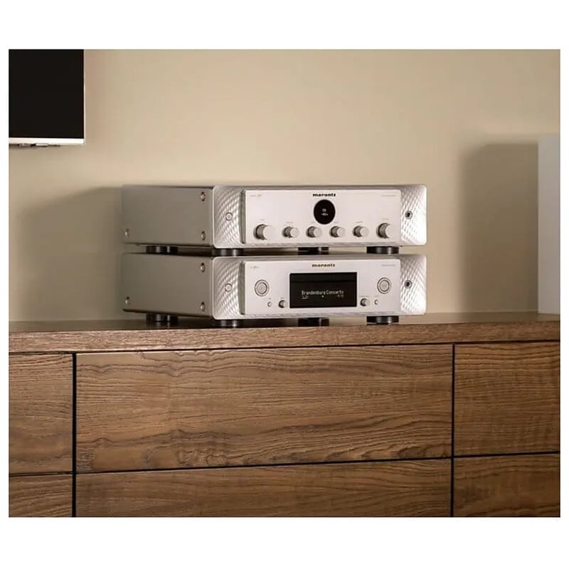 マランツの Hi-Fi アンプを特徴付ける、フルディスクリート構成の電流帰還型増幅回路をプリアンプ部に採用しています。これは、マランツが長年にわたって磨き上げてきたハイスピードで S/N が高く、低歪という特長を備える非常に優れた増幅回路です。また、左右チャンネルの等長、平行配置を徹底した基板上のレイアウトを上位機種から継承し、空間表現力を磨き上げています。そして、MODEL 50 のプリアンプ回路には、マランツオリジナルの高速ディスクリート・アンプモジュール「HDAM(Hyper Dynamic Amplifier Module)」をさらに発展させた低歪み型 HDAM を採用しており、従来モデルに対して約 40%の歪率の改善を実現しました。