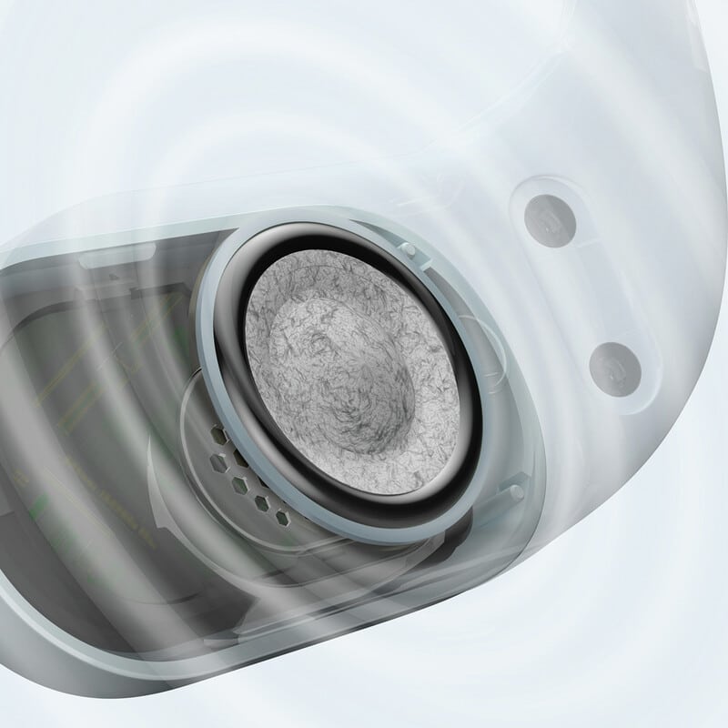 筐体内部には、独自の音波制御構造を搭載。ドライバー前後の音波干渉を抑え、低音の短絡を効果的に防ぎます。オープンイヤー型でありながら、芯のある低音と優れた定位感を実現しました。