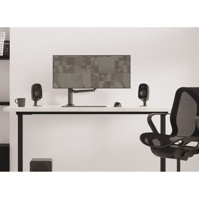 設置場所を選ばないコンパクトな遊び心のあるフォルムと、誰もが迷わない直感的な操作性を両立した、コンパクトデスクトップスピーカー