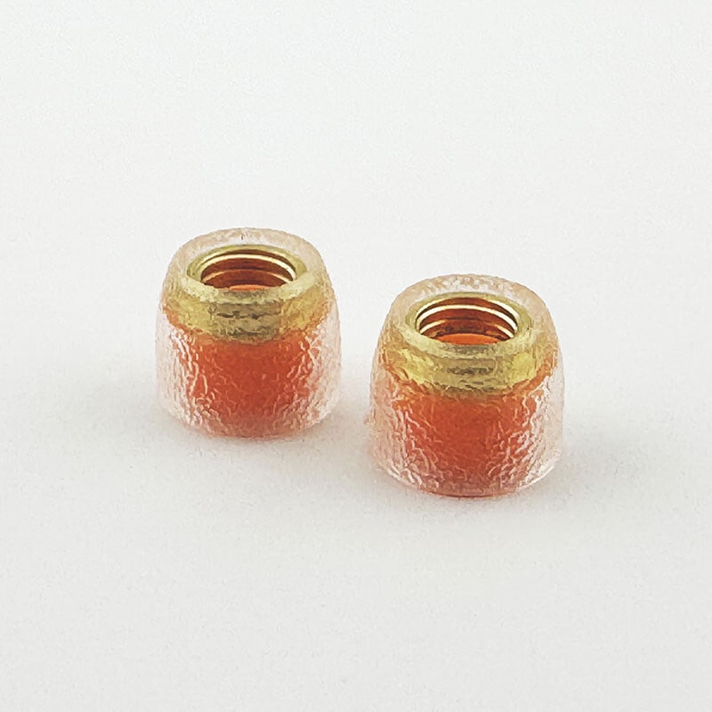 シリコン製のイヤーピース内部に、精密加工された真鍮(ブラス)製のスパイラル形状コアを内蔵