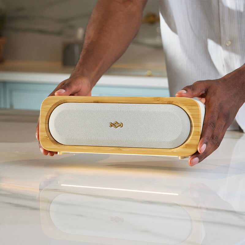 IP67 等級の防水・防塵仕様で、屋外でも安心して使用できます。REGRINDTMシリコンと滑らかな竹素材を使用した、サステナブルで上質なデザインも魅力です。AuracastTMによる複数台の同モデルスピーカー接続に対応。BluetoothR 6.0 対応、さらにはボトルオープナーまで搭載。仲間とのひとときを特別な時間に変えてくれる一台です。