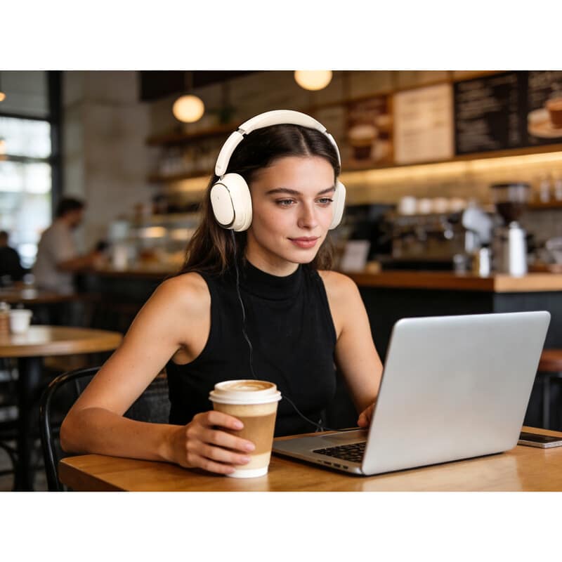 ブラック&ホワイトの2色から選べる、スタイリッシュなノイズキャンセリングヘッドホン。LDACでワイヤレスでも高音質を楽しめ、最大-42dBのノイズカットで街の騒音をシャットアウト。2時間の充電でノイズキャンセルONでも45時間再生できる大容量バッテリー。