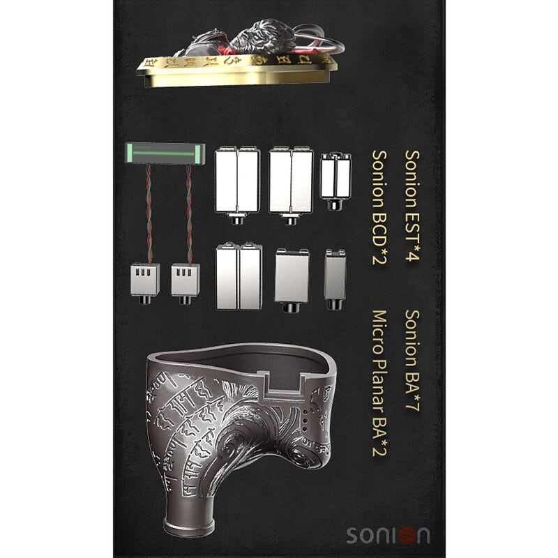 Sonion 製ドライバーを採用したマルチドライバー構成で、片側最大 15 基を搭載。