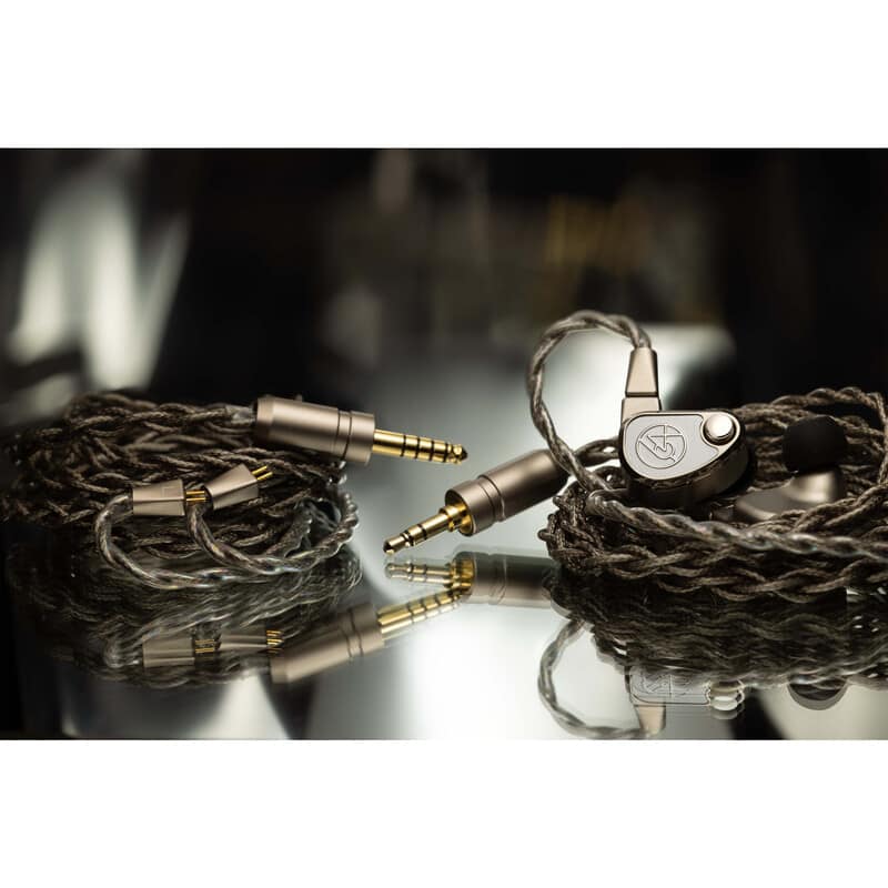 TWELVE Ti 専用に設計されたケーブルは、チタン筐体と調和する統一感のあるデザインを採用。銀メッキ単結晶銅(UP-OCC)を用いた 4 芯クロス編組構造により、優れたノイズ耐性と高い信号伝送性能を実現しています。