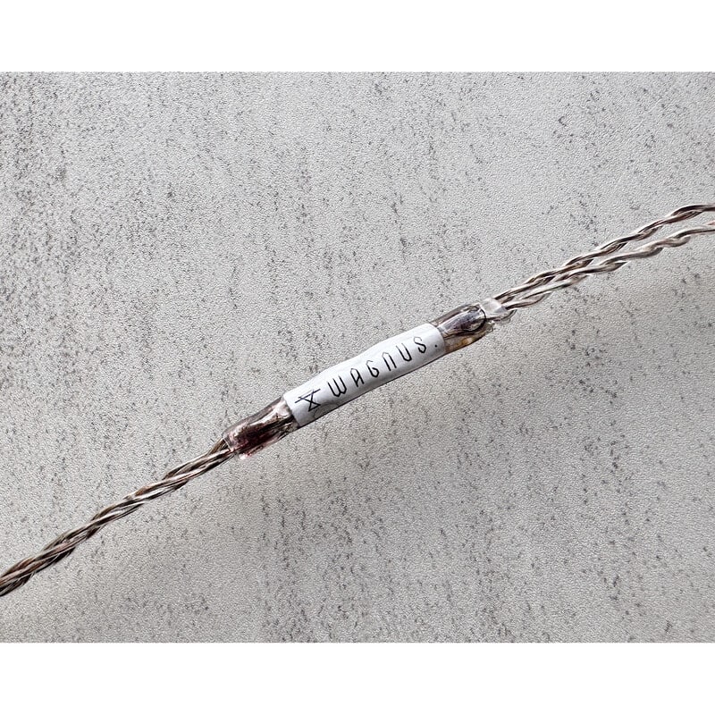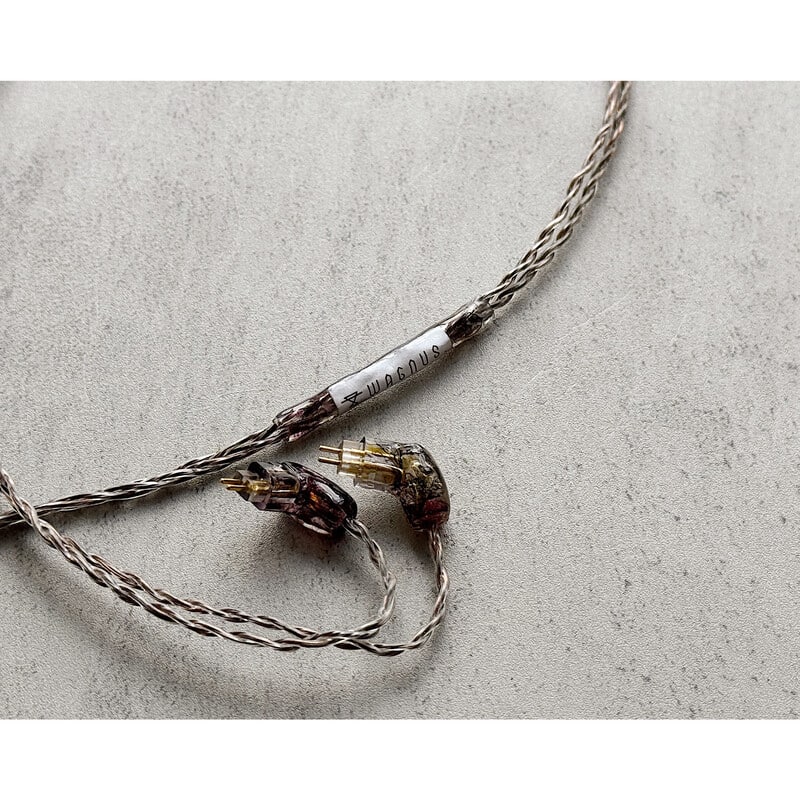 本作にはWAGNUS.の次世代4.4mm 5極プラグ「EIR - “ARGENTA”」を採用。HP-OFC(5Nグレード)銅を硬質素材として用い、シアンフリー無電解ストレート銀メッキを施した、完全な現代設計のオリジナルプラグです。
