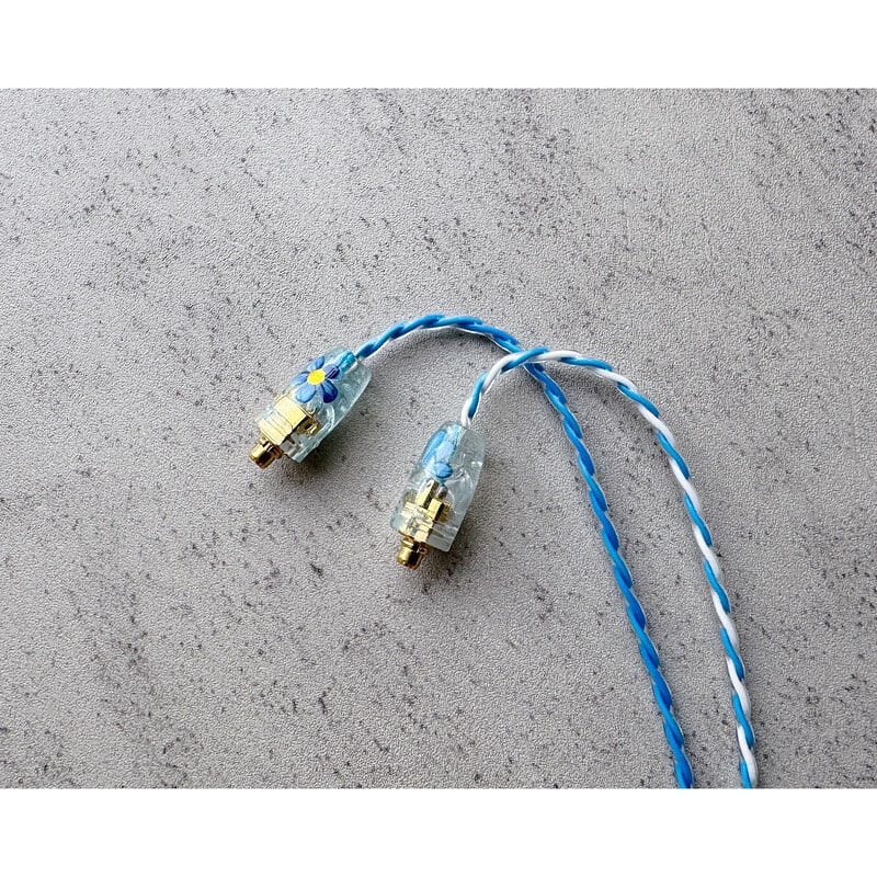 本作専用となるロゴ&イヤーコネクタのアートワークには、それぞれケーブルカラーに沿ったパステルな着色をベースに、仕上げとして特殊なフラワーデコレーションを行うことで、可愛らしくも美しい他にないデザインが完成いたしました。